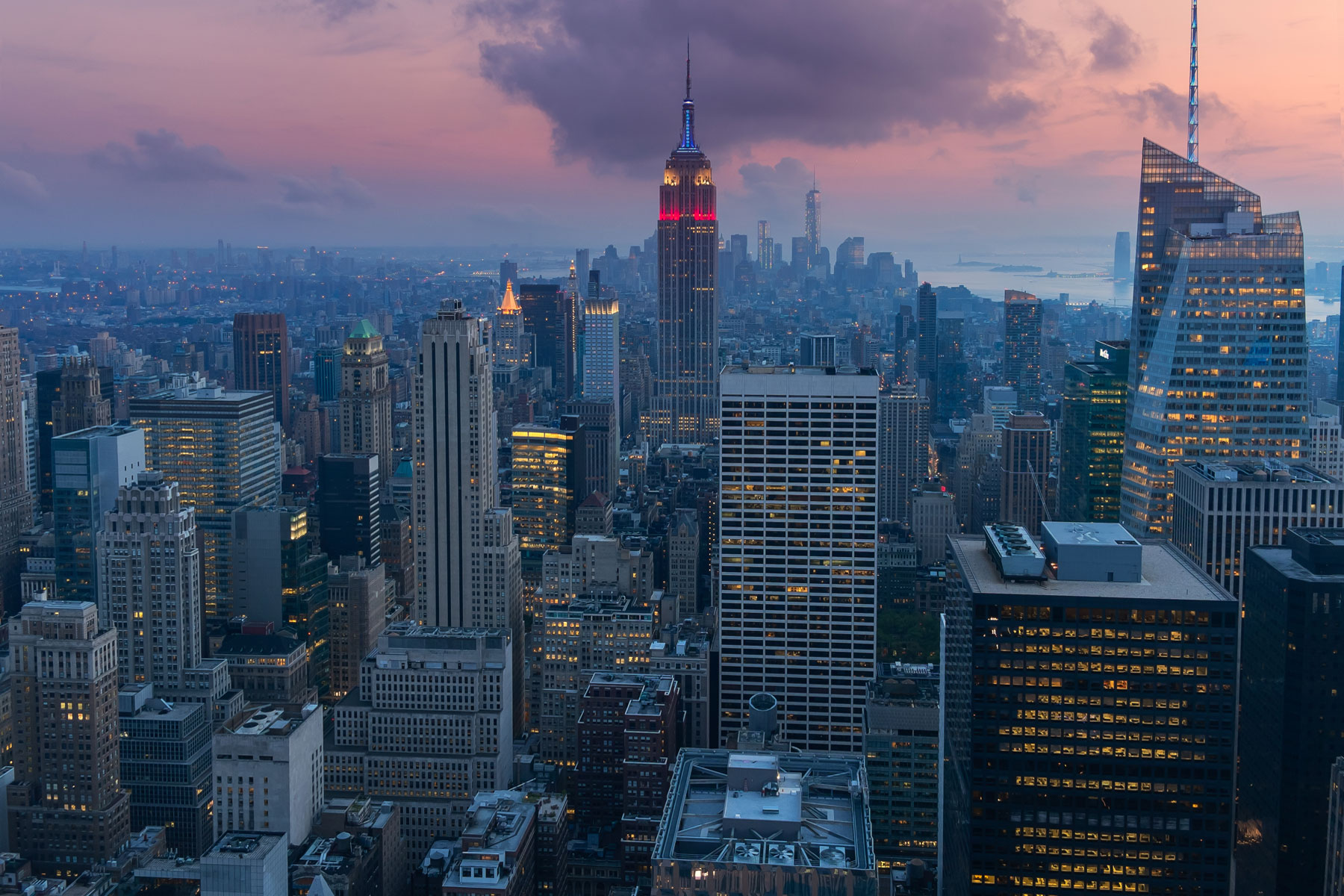 Vyerna från Top of the Rock, utsiktsvåningarna på taket till Rockefeller Center, är smått magiska. Empire State Building känner du igen och långt nere till höger tronar One World Tower. Skyskrapan med spiran och den brutna fasaden direkt till höger i bilden är Bank of America Tower.